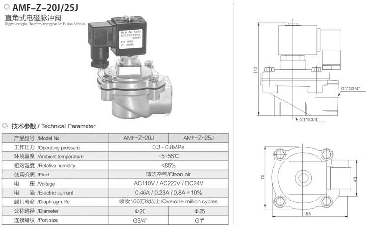 AMF-Z-20J/25J直角式电磁脉冲阀
