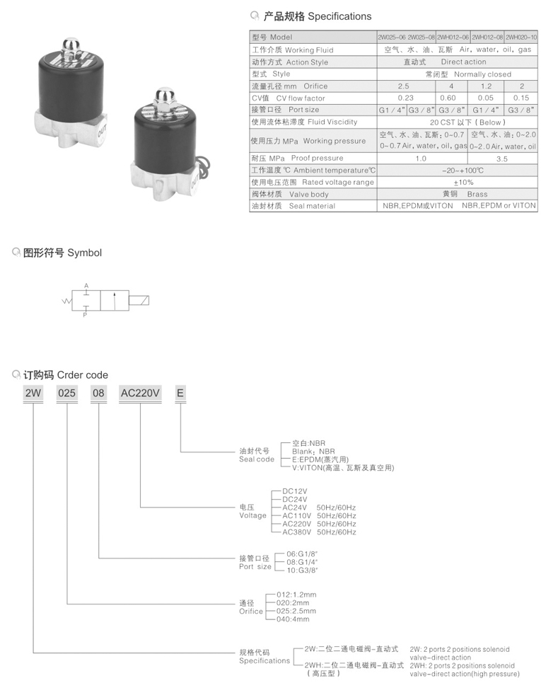 2W系列二位二通直动式电磁阀